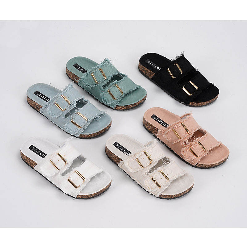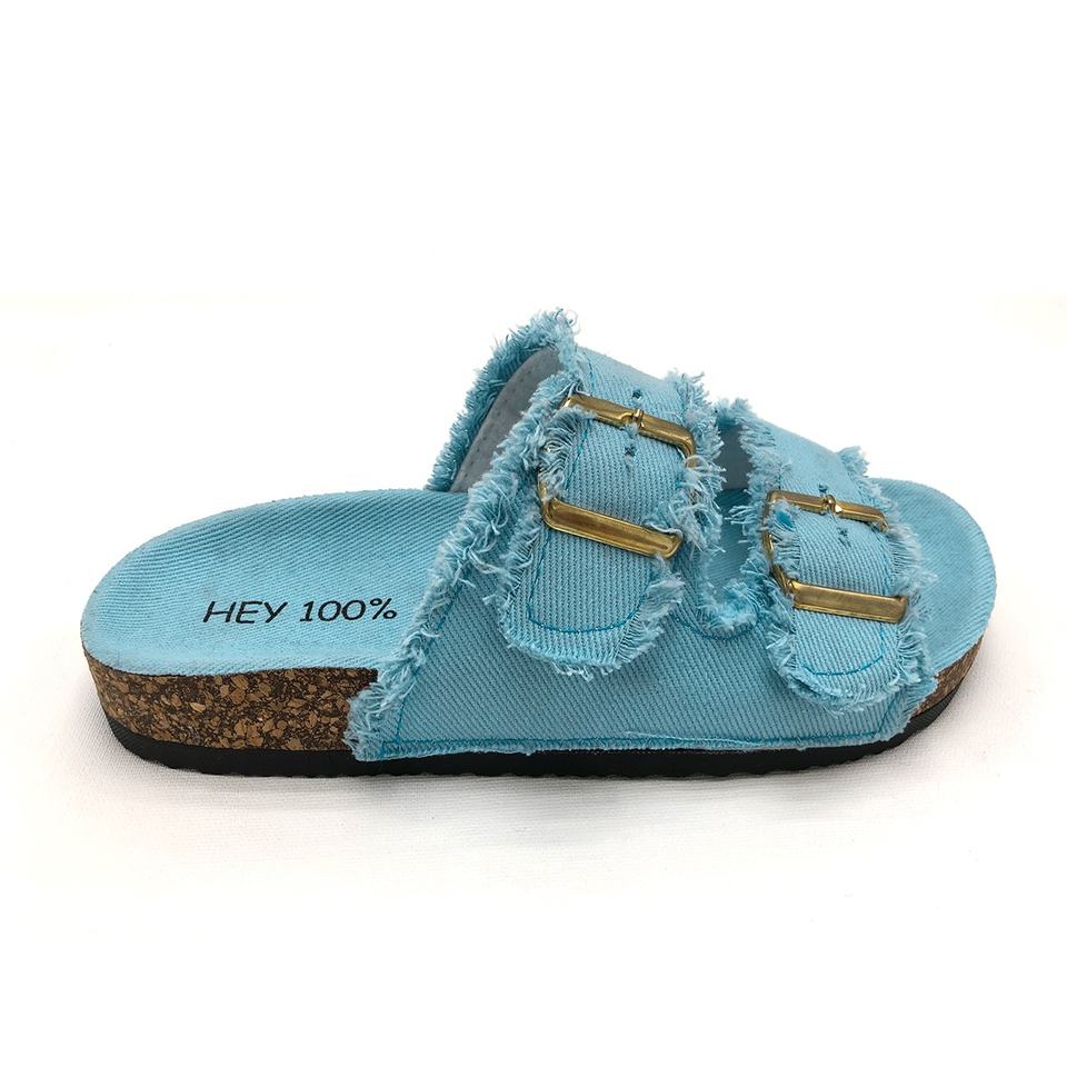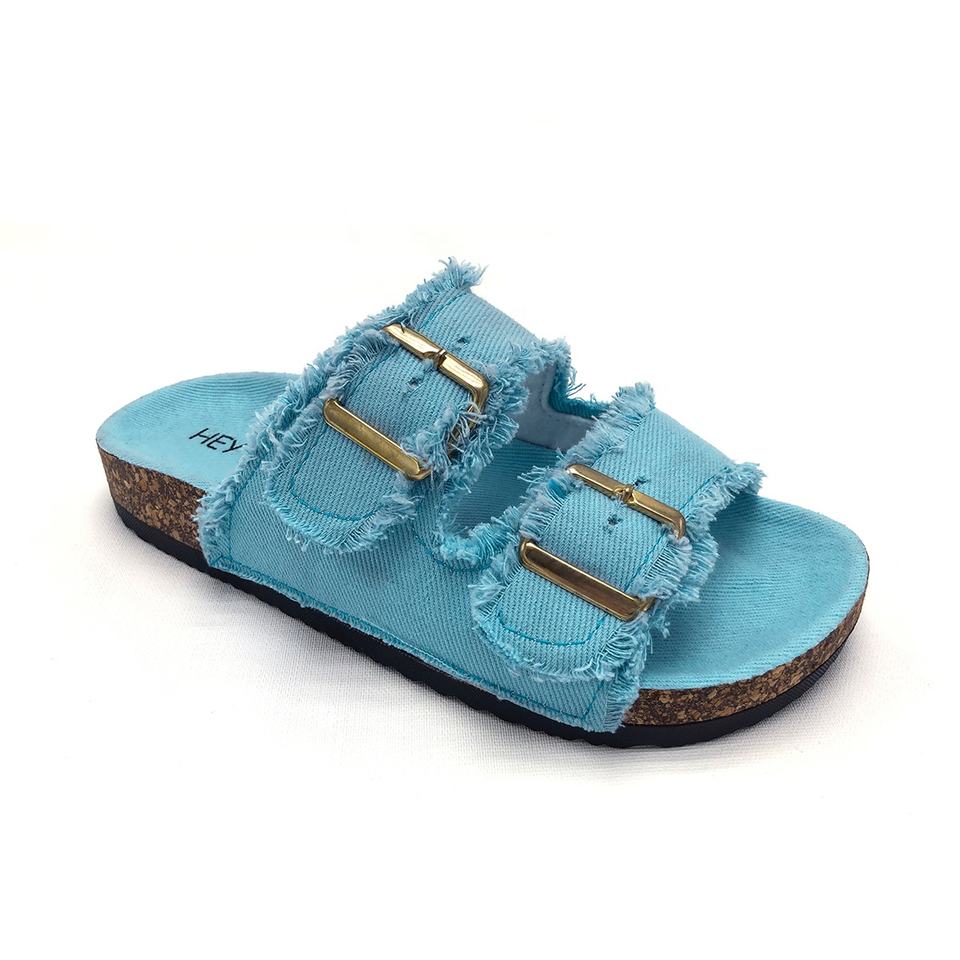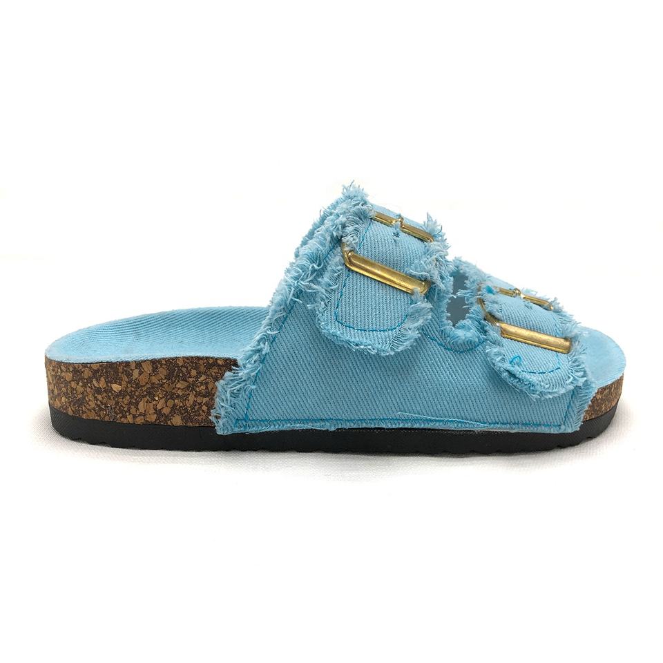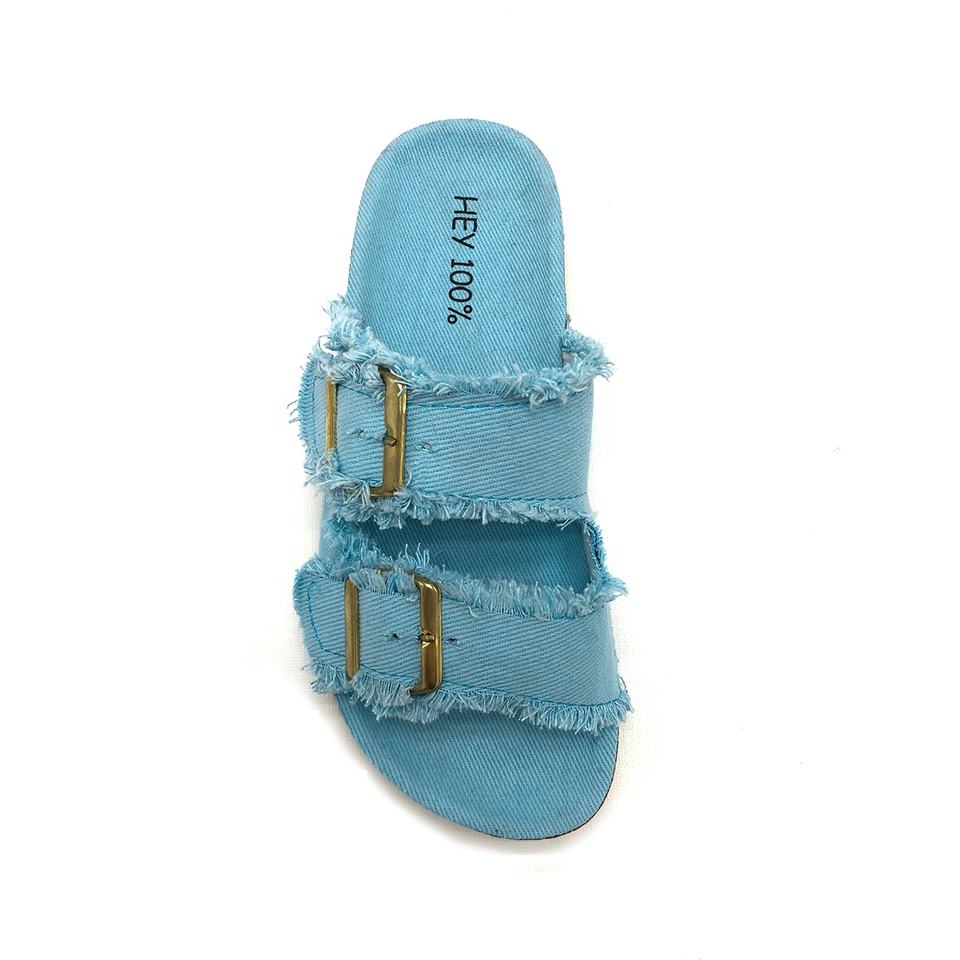 Double Strap Denim Cloth Women's Slides with Double Buckle Linen Cloth Girl's Slipper