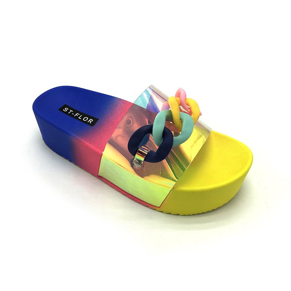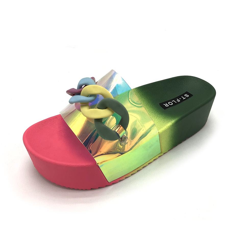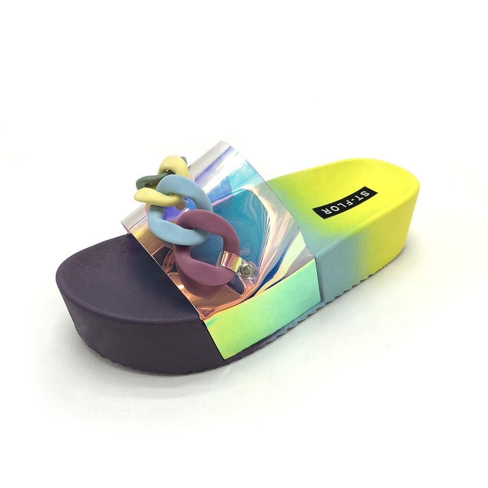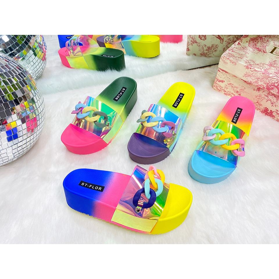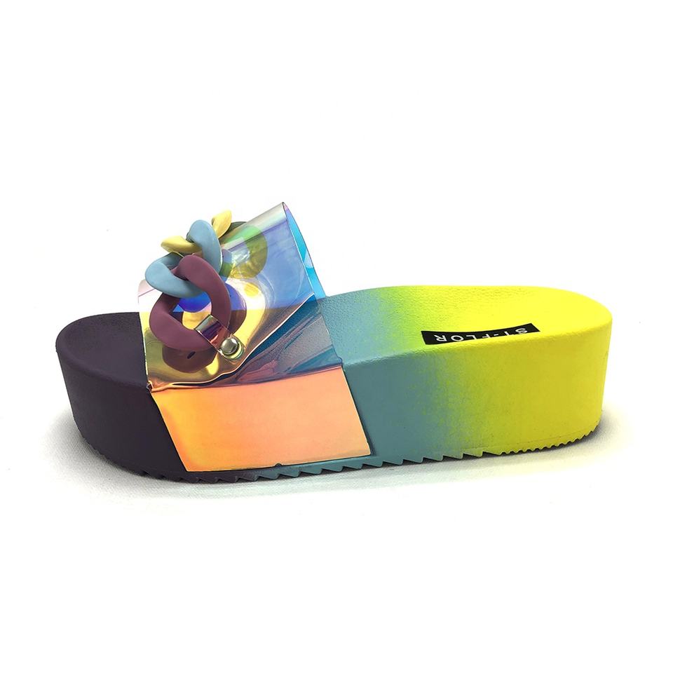 Fantasy Holographic Color Women Slides Gradient Colorful High Heel Slippers Summer Ladies Sandals with Chain